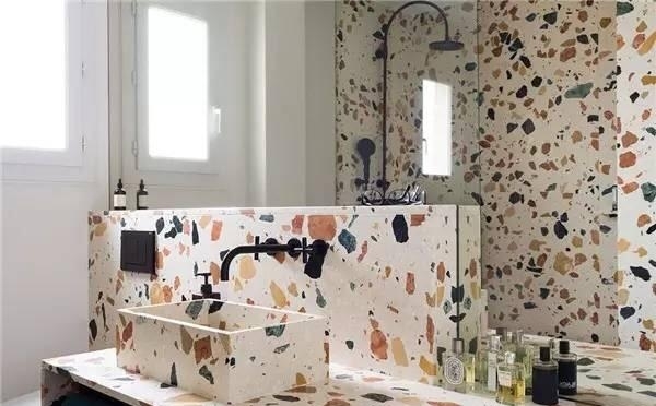 很眼熟吧?没错!你印象里曾经学校、医院楼道的标配,另外还有传统建筑的外墙面……都是水磨石。是不是感觉这都已经是一个世纪前的产物了?其实水磨石是相当耐磨耐用的,只是略显廉价。好在如此有内涵的材质,在设计师的脑洞里又焕发了新生。如同之前火爆的水泥和大理石一样,从桌椅、水槽到小物件,有些虽然只是用了水磨石的颜色和纹理,但其成为家装爆品已是必然。